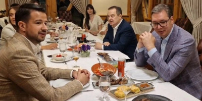 - Lepo veče, uz pesmu, sa prijateljima - napisao je Vučić na Instagramu i objavio snimak sa večere.