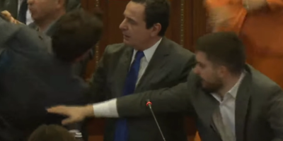 Ne zna se tačno šta se dogodilo, ali je Kurti u jednom trenutku poliven vodom i poslanici su počeli da se okupljaju, nakon čega je došlo do tuče, piše Koha.
