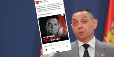- Pozdravljamo odluku SAD da sankcionišu Aleksandra Vulina - direktora Bezbednosno-obaveštajne agencije Srbije, bivšeg ministra odbrane i ministra unutrašnjih poslova i Putinovog punomoćnika u Srbiji. EU treba da sledi njihov primer! - navodi se u objavi.