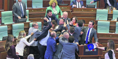 Takozvani premijer lažne države 'Kosovo' Aljbin Kurti izbegao je juče linčovanje za govornicom u 'kosovskoj skupštini', kada je prvo poliven vodom, a zatim se kao šonja sklonio kada je počela opšta tuča poslanika njegove stranke i opozicionara!