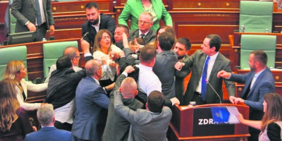 Podsetimo, u četvrtak je izbila masovna tuča poslanika vladajuće koalicije i opozicije dok je za govornicom u "kosovskoj skupštini" govorio takozvani premijer lažne države "Kosovo" Aljbin Kurti. Njega je prvo jedan poslanik opozicije iz redova DPK polio vodom, a onda je počela opšta tuča. Da bi izbegao napad, Kurti se sakrio iza dve poslanice, koje su ga branile od razularene mase.