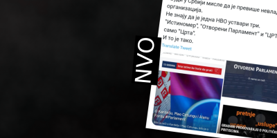 - Ljudi u Srbiji misle da je previše nevladinih organizacija. Ne znaju da je jedna NVO ustvari tri. "Istinomer", "Otvoreni Parlament" i "CRTA" su samo "Crta". I to je tako - navodi se u objavi.