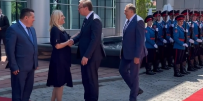 Prethodno su predsednici Republike Srpske Milorad Dodik i Srbije Aleksandar Vučić svečano dočekani u Administrativnom centru Vlade Republike Srpske.