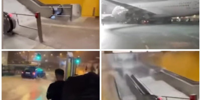 Kako se vidi na snimku, piste su poplavljene, avioni su u vodi a na terminalima je osvanulo "jezero".