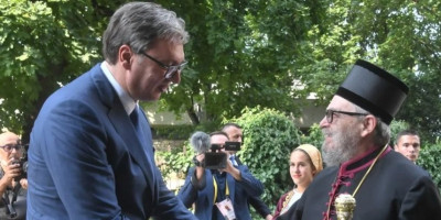 Predsednik Srbije Aleksandar Vučić sastao sa danas sa episkopom budimskim Lukijanom u Sentandreju, nakon čega će mu biti dodeljen orden Eparhije budimske prvog reda.