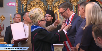 - Zahvaljujući predsedniče vama taj san je postao java. Mnogo znači vaš put u misiji mira - rekao je vladika koji je danas predsediku uručio orden za posebne zasluge i staranje o Eparhiji budumskoj i SPC u celini kao i za podršku srpskom narodu u Mađarskoj u naporima za održanje verskog i nacionalnog identiteta.