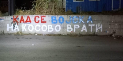 Grafit je ispisan u bojama srpske trobojke, ćirilicom! Sveže boje crvene, plave i bele još se presijavaju, pogledajte sliku!
