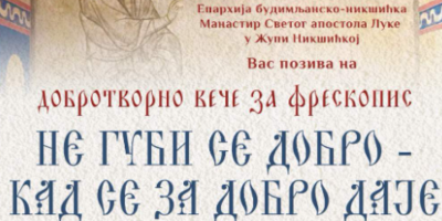 "Ne gubi se dobro-kad se za dobro daje" je slogan pod kojim se održavaju događaji putem kojih se nastoje prikupiti sredstva za freskopisanje crkve srpskog pravoslavnog manastira Svetog Apostola Luke u Župi Nikšićkoj. Jedan od tih događaja je i ovo dobrotvorno veče - predstava u kojoj će učešće uzeti istaknuti dramski umetnici: Nebojša Dugalić, Branislav Zeremski, Aleksandar Srećković, Andrej Šepetkovski, Nebojša Ilić, Radivoje Bukvić, Ivan Bosiljčić, Sloboda Mićalović i vokalno-instrumentalni sastav "Fenečki biseri", i g. Aleksandar Gajšek kao voditelj i narator.