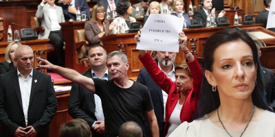 Tepićeva je i danas u sali Skupštine Srbije, na kojoj se raspravlja o rebalansu budžeta i zakonskim regulativama za povećanje plata i penzija i isplatu pomoći od 10.000 dinara za decu do 16 godina, svom silinom lupala o poslaničku klupu.