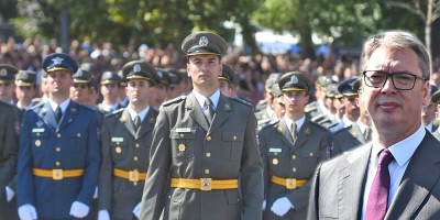 - Samo svojom odgovornošću i ozbiljnošću možemo svoj narod da sačuvamo. I ne smemo da pokažemo našu slabost. Nastavićemo da razvijamo svoju industriju, da damo sve od sebe da uvek budemo svoji na svome i da ne damo nikome Srbiju da napadne. Bićemo sve jači, a mi jače pojačanje od vas nismo mogli da dobijemo. Ne postoji oružje i oruđe koje vredi više od vaše pameti i od vaših srca. Hvala vam na trudu i energiji, hvala divni roditelji što ste podržali decu da služe otadžbini Srbiji, a mi ćemo gledati samo da vam budemo od pomoći. Neka živi Vojska Srbije, živela Srbija! - poručio je predsednik Srbije.