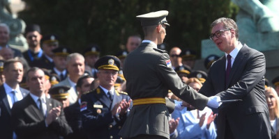 - Samo svojom odgovornošću i ozbiljnošću možemo svoj narod da sačuvamo. I ne smemo da pokažemo našu slabost. Nastavićemo da razvijamo svoju industriju, da damo sve od sebe da uvek budemo svoji na svome i da ne damo nikome Srbiju da napadne. Bićemo sve jači, a mi jače pojačanje od vas nismo mogli da dobijemo. Ne postoji oružje i oruđe koje vredi više od vaše pameti i od vaših srca. Hvala vam na trudu i energiji - istakao je tom prilikom predsednik Vučić, obraćajući se mladim oficirima.