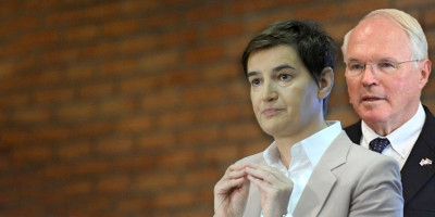Predsednica Vlade Republike Srbije Ana Brnabić obišla je danas arheološko nalazište u Vinči zajedno sa ambasadorom SAD Kristoferom Hilom. Tokom konferencije za medije, novinarka televizije Nova S, u vlasništvu Dragana Šolaka, pitala je ambasadora Sjedinjenih Američkih Država da li razgovara sa opozicijom o pomeranju izbora.