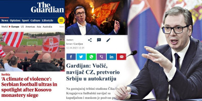 Britanski list „Gardijan“ je u svom članku upozorio na navodne „fašističke pozive“ srpskih navijača na Kosovu i Metohiji, nakon napete situacije koja se dogodila u Banjskoj, a takođe su naglasili „povezanost“ navijača i predsednika Srbije, što je totalno sumanuto.