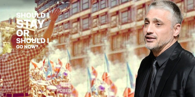 Čeda Jovanović je uz fotografiju sa jednog od protesta devedesetih napisao na engleskom čuvene stihove legendarnog beda "Clash" - "Should I stay or should I go now" (Da li da ostanem ili da odem sad?).