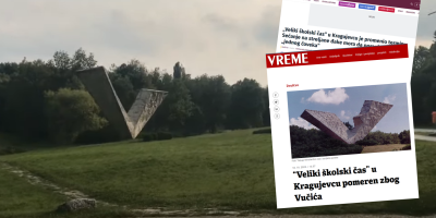 „Veliki školski čas“ u Kragujevcu je promenio termin: Sećanje na streljane đake mora da porani zbog „jednog čoveka“, naslov je na tajkunskom portalu Nova, dok Vreme tvrdi da je "Veliki školski čas pomeren zbog Vučića".