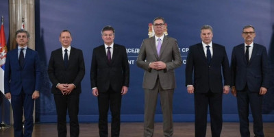 Predsednik Srbije Aleksandar Vučić sastao se danas sa "velikom petorkom", odnosno sa američkim izaslanikom za Zapadni Balkan Gabrijelom Eskobarom, specijalnim predstavnikom EU za Balkan Miroslavom Lajčakom i diplomatskim savetnicima lidera Francuske, Nemačke i Italije.
