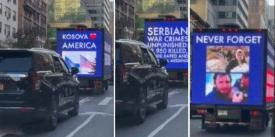 Kako se vidi na snimku, koji je objavila takozvana "šefica kosovske diplomatije" Meliza Haradinaj-Stubla, na jednom od vozila sa reklamama u centru Njujorka pojavile su se poruke da "Srbiju treba kazniti zbog zločina na Kosovu".