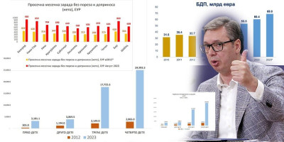 U Srbiji je danas sve mnogo bolje i više. Raste i BDP (bruto društveni proizvod, odnosno sve ono što kao država proizvedemo), i plate i penzije, i dečiji dodaci, i pruge i autoputevi…