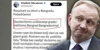 "Zaustavićemo uništavanje grada i vratićemo Beograd Beograđanima", napisao je Obradović, i time poručio da će, ako dođu na vlast, proterati sve one za koje misle da nisu Beograđani!?!