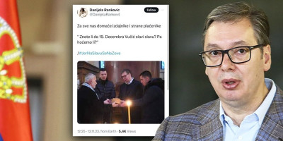 - Za sve nas domaće izdajnike i strane plaćenike. "Znate li da 19. decembra Vučić slavi slavu? Pa hoćemo li?" Jer na slavu se ne zove - napisala je ona uz fotografiju predsednika, njegovog brata i starijeg sina iz crkve.