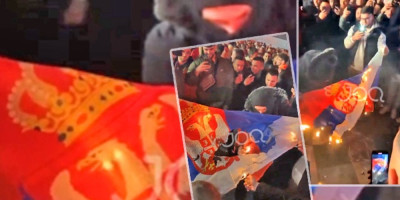 Snimak je osvanuo na društvenim mrežama i vidi se kako navijači koji nose fantomke pale srpsku zastavu.