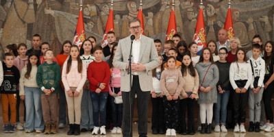 Predsednik Srbije Aleksandar Vučić primio je danas učenike i nastavnike OŠ "Sveti Sava" iz Žerovnice sa Kosova i Metohije.