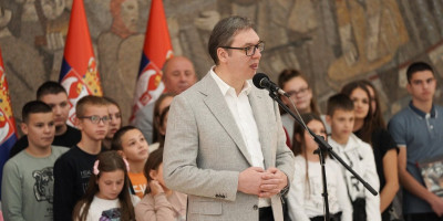 Predsednik Srbije Aleksandar Vučić ugostio je u Palati Srbija učenike i nastavnike Osnovne škole "Sveti Sava“ iz Žerovnice u Opštini Zvečan sa Kosova i Metohije.