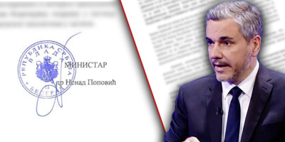 Pogledajte snimak u kom je dokument Vlade Srbije u kom jasno piše da je Vladimir Obradović savetnik ministra, a pored toga na dnu dokumenta stoji pečat i potpis ministra Nenada Popovića.