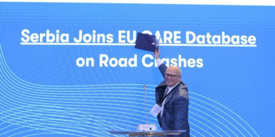 "Od danas se podaci o saobraćajnim nesrećama sa puteva Srbije nalazi u zvaničnim izveštajima Evropske komisije kao i podaci zemalja - članica. Pre obraćanja na ceremoniji prekrio sam deo natpisa i ostavio - Srbija se priključuje EU! To je naš politički cilj", poručio je Vesić.