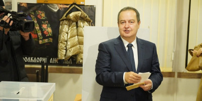 Dačić je na biračko mesto došao u pratnji supruge i sina.