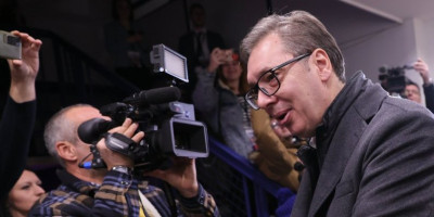 - Dobro došli na slavlje - rekao je predsednik Srbije Aleksandar Vučić nakon pristizanja u štab SNS odgovarajući na pitanja novinara.