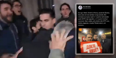 - Evo ga i Đelić. Direkt iz Pariza, savetnik Šolaka. Sve uzeo od ove zemlje i ovog naroda. Bio ministar za nauku kad ni 1 naučno-tehnološki park (NTP) nije izgrađen, ni 1 naučni institut osnovan. Sad, valjda, pita dokle više NTP-ova, dokle ulaganja u nauku? Šolak okom, oni skokom.