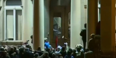 Razularna rulja lomi vrata na ulazu u Skupštinu! Pokušavaju nasilno da uđu u zgradu (VIDEO)