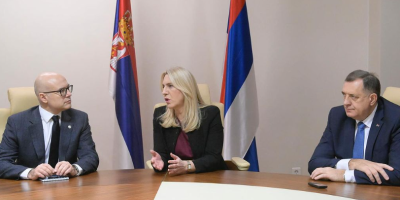 Potpredsednik Vlade i ministar odbrane Miloš Vučević sastao se danas sa srpskim članom Predsedništva BiH Željkom Cvijanović i predsednikom Republike Srpske Miloradom Dodikom u Administrativnom centru Vlade Republike Srpske u Istočnom Sarajevu.