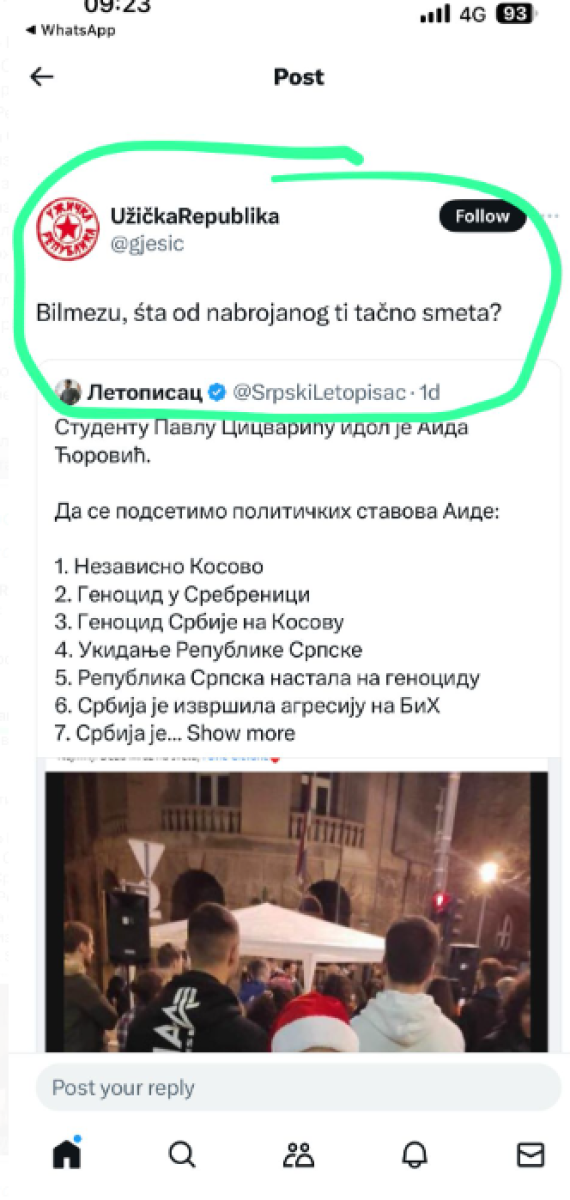 Ovo je na Tviteru objavio član pod imenom "Letopisac". On je naveo koji su to inače Aidini politički stavovi, obzirom na to da nju podržava...