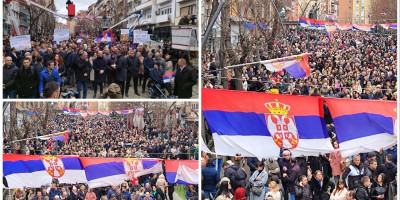 Intoniranjem himne Srbije počeo je veliki protestni opštenarodni skup kojim građani žele da skrenu pažnju čitavom svetu i međunarodnoj zajednici na svoj obespravljen položaj, posebno zbog odluke Prištine o ukidanju dinara.
