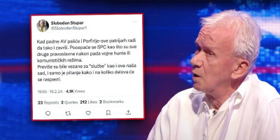 - Kad padne AV pašće i Porfirije - sve patrijarh radi da tako i završi. Pocepace se SPC kao što su sve druge pravoslavne nakon pada vojne hunte ili komunističkih režima. Previše su bile vezane za "službe" kao i ova naša sad, i samo je pitanje kako i na koliko delova će se raspasti - poručio je Stupar.