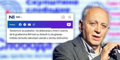 "Teodorović je podsetio i na dešavanja u Areni i ocenio da bi građanima BiH koji su dolazili tu da glasaju trebalo da bude zabranjen ulazak u zemlju doživotno", prenosi N1 Teodorovićeve reči.