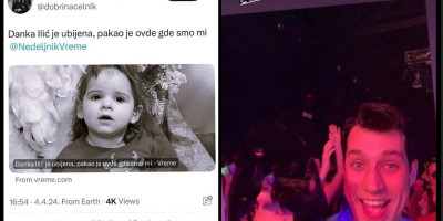 Hrvatska pevačica Ida Prester održala je sinoć koncert u Beogradu na kome se za sve pare veselio jedan od lidera Đilasove koalicije Srbija protiv nasilja Dobrica Veselinović! Da stvar bude bizarnija, on je sinoć u pet popodne ostavio na svom profilu vest o smrti malene danke, sa crnim srcem uz komentar da je pakao ovo gde mi živimo. U maniru svoje koalicije, pokušavajući da još jednu tragediju iskoristi kako bi dobio glas više što su svi oni zajedno toliko puta radilli.