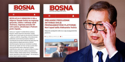 Objavili su dva gusna teksta za sat vremena. Naslov prvog teksta glasi: "Rezolucija o genocidu u UN-u: Odgovor Zapada Vučiću na negiranje genocida, zaštitu i veličanje ratnih zločinaca, negiranje presuda UN-ovih sudova, udruživanje s Putinom protiv Zapada…".