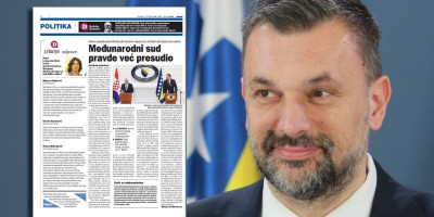 Tome svedoči i tekst koji je objavljen u njihovom današnjem broju, i to s naslovom "Međunarodni sud pravde već presudio", a u kom je ministar spoljnih poslova Bosne i Hercegovine Elmedin Konaković najavio da će tražiti isplatu ratne štete od Srbije, kao i obnovu revizije presude protiv Srbije, napominjući da „ovakav Vučić i ovakva Srbija od BiH ne zaslužuju ni trunku poštovanja“.