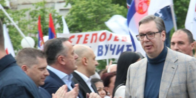 - Kada su krenuli sa inicijativama da naš narod nazovu genocidnim, pa ans onda danima obmanjuju šta je cilj toga, naš posao je da se borimo za našu zemlju, i ne zamerite što nam je Srbija važnija od svega, i hvala vam što brinete za našu zemlju više nego za bilo šta drugo. Nrednih dana kada budem razgovarao i sa Šolcom i sa ukrajinskim, ruskim i drugim zvaničnicima hoću da znate da ćemo u svakom trenutku da damo sve za našu Srbiju, makako to zvučalo nekome. Našu Srbiju nećemo da damo nikome i ni za šta na svetu... Oni su mislili da mala Srbija neće smeti da imse suprostavi i kad oni kažu da moramo da se saglasimo sa rezolucijom i sa svim što tražimo, jer mi smo veliki, vi ste mali. Mislili su da ćemo kao neki pre 20 godina da sagnemo glavu, mi smo rekli da znamo koliko su veliki ali da znamo da nema veće svetinje od naše Srbije i zato ćemo vam se suprostaviti u Njujorku i u Briselu i bilo gde da želite da ukinete srpski narod - rekao je Vučić.