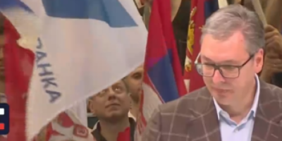 - Aco, Srbine! Aco, Srbine! Kosovo je srce Srbije! Vučić Aleksandar! Nema predaje! Nema predaje! - odjekivalo je halom.