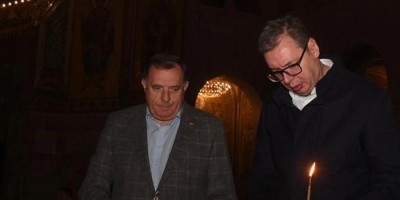Sa predsednikom Srbije bili su i predsednik Republike Srpske Milorad Dodik, kao i premijer Srbije Miloš Vučević. Ubrzo po dolasku počela je i molitva, a u hramu su i bili brojni zvaničnici iz Srbije i RS.