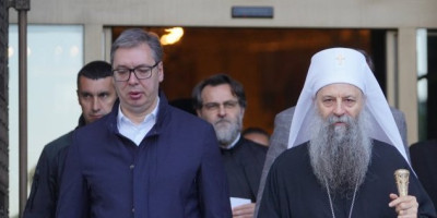 Patrijarh Porfirije je u obraćanju poželeo predsedniku Vučiću, pred današnji put u Njujork, da ima mudrosti i odlučnosti da svedoči istinu.