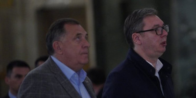 Dodik je prisustvovao zajedničkoj jutarnjoj molitvi u hramu Svetog Save na Vračaru pred odlazak predsednika Srbije Aleksandra Vučića u Njujork.