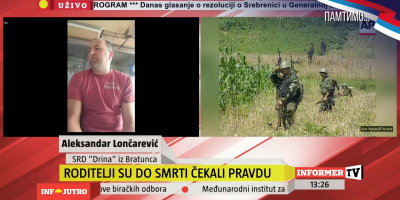 Aleksandar Lončarević iz Bratunca podelio je svoje traumatično iskustvo iz rata 1992. godine kada su mu muslimani ubili stariju sestru u šestom mesecu trudnoće i da mu se danas smeju u lice.