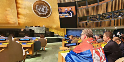 Nakon usvajanja sramne rezolucije o Srebrenici, predsednik Srbije Aleksandar Vučić se ogrnuo zastavom Srbije u sali.