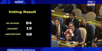 Podsećamo, za rezoluciju je glasalo 84 države, 19 protiv, 68 uzdržanih.