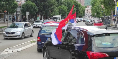 Podrska Vucicu i njegovoj borbi u GS UN stize i iz Kosovske Mitrovice! kolone vozila sa srpskim trobojkama provezle su se centrom grada oko spomenika Cara Lazara